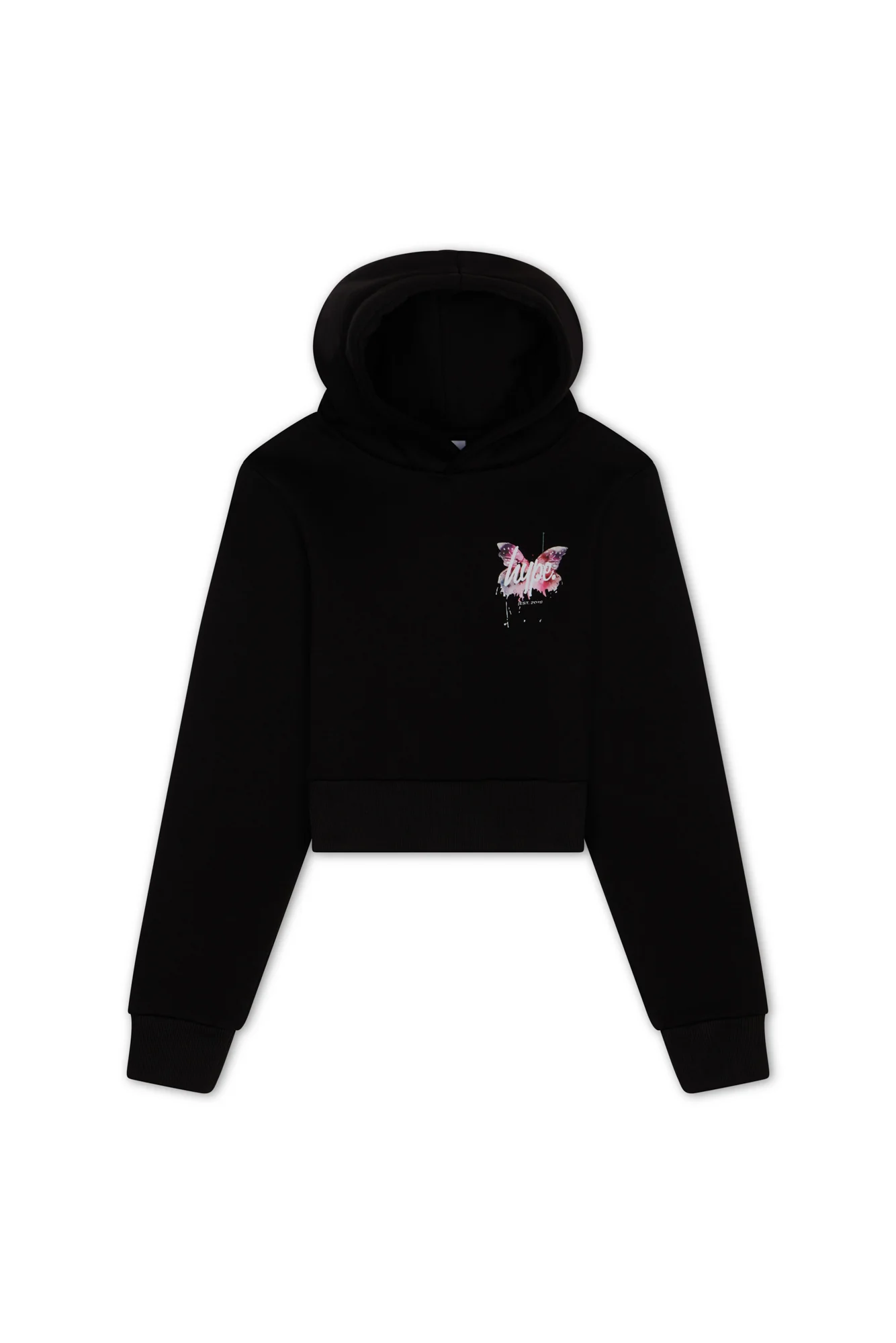 Hype Girls Black Butterfly Cropped Hoodie
