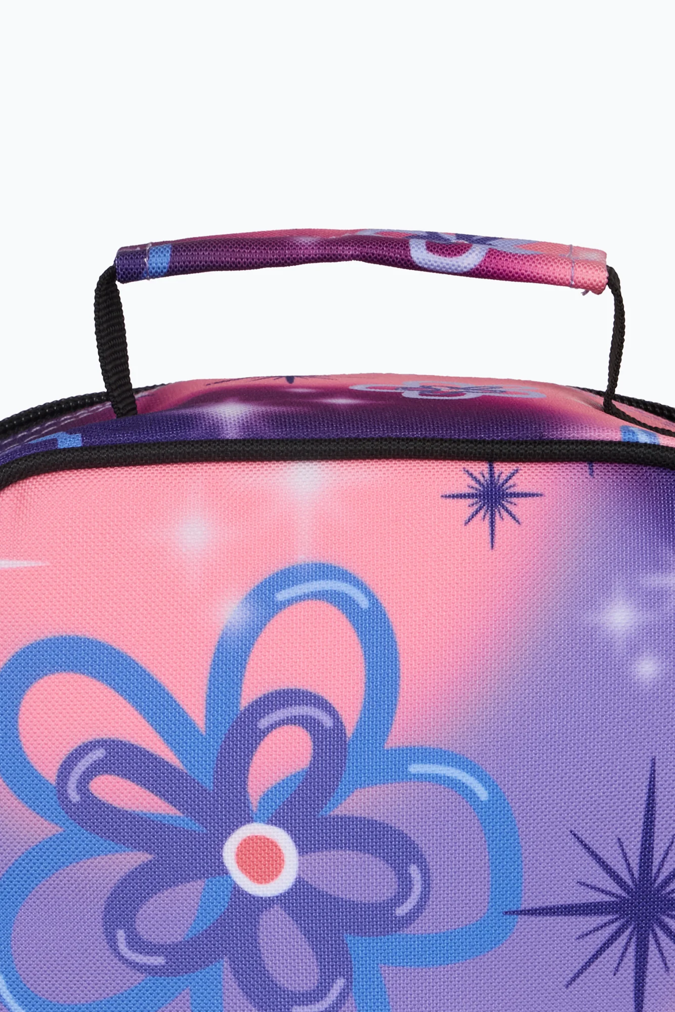 This vibrant purple lunch bag features a dreamy blend of purple and pink tones, decorated with oversized floral graphics and twinkling sparkles, the perfect mix of fun and practicality for school days. Whether you’re packing snacks or a full lunch, this bold floral lunch bag keeps everything cool, fresh, and ready to enjoy.