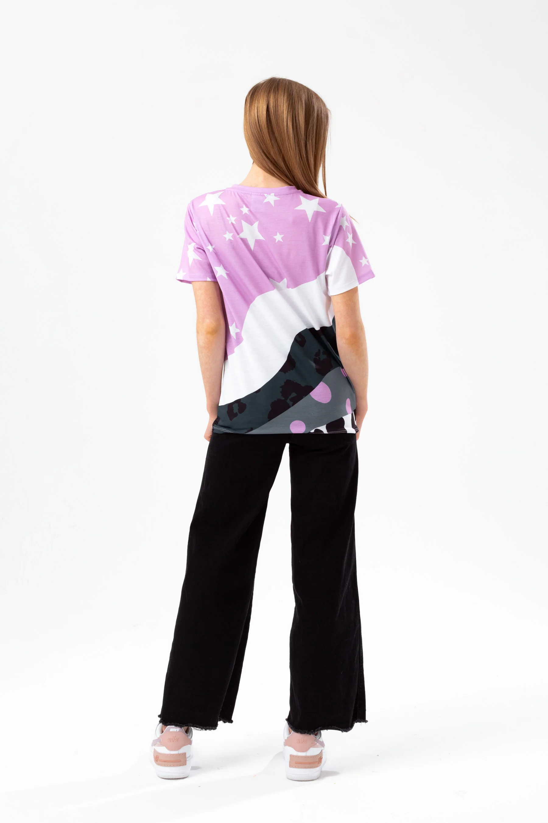 Make a statement in the HYPE. Girls Purple Star Wave Glitter Script T-Shirt. Designed in a soft touch fabric blend for a supreme amount of comfort in our standard t-shirt shape. Featuring an all-over purple star wave print, finished with a crew neckline, short sleeves, and the HYPE. script logo in contrasting pink glitter. Wear with a HYPE. hoodie and leggings to complete the look. Wash inside out at 30 degrees with similar colours only.