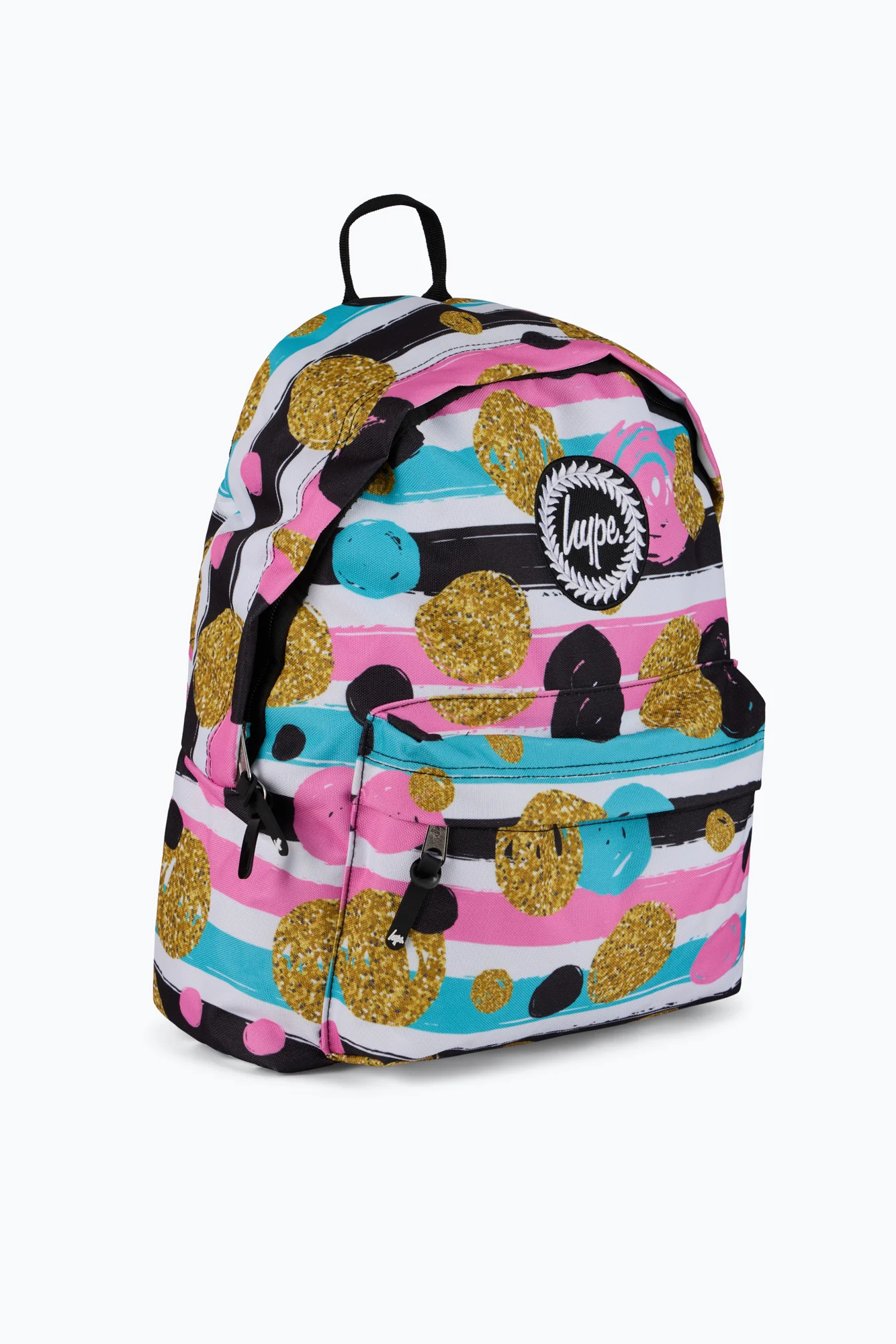 Get ready to sparkle your way through the school day with the JHype Multi Spots and Stripes Backpack! With bold stripes, glittery gold dots, and pops of pink and blue, this backpack is made for kids who love colour, confidence, and a little extra shine.